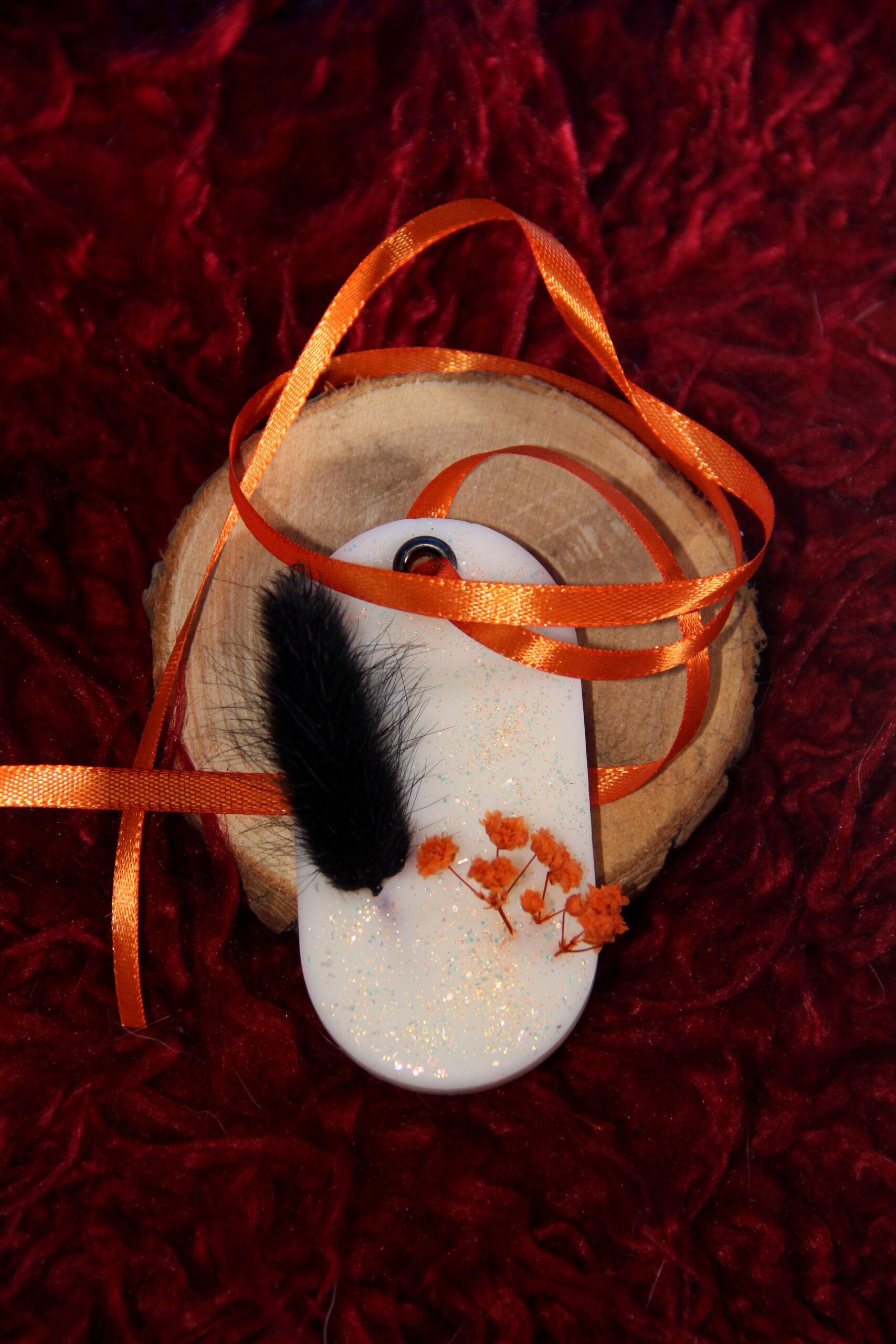 Fleurs séchées ou feuilles séchées délicatement déposées à la main.
